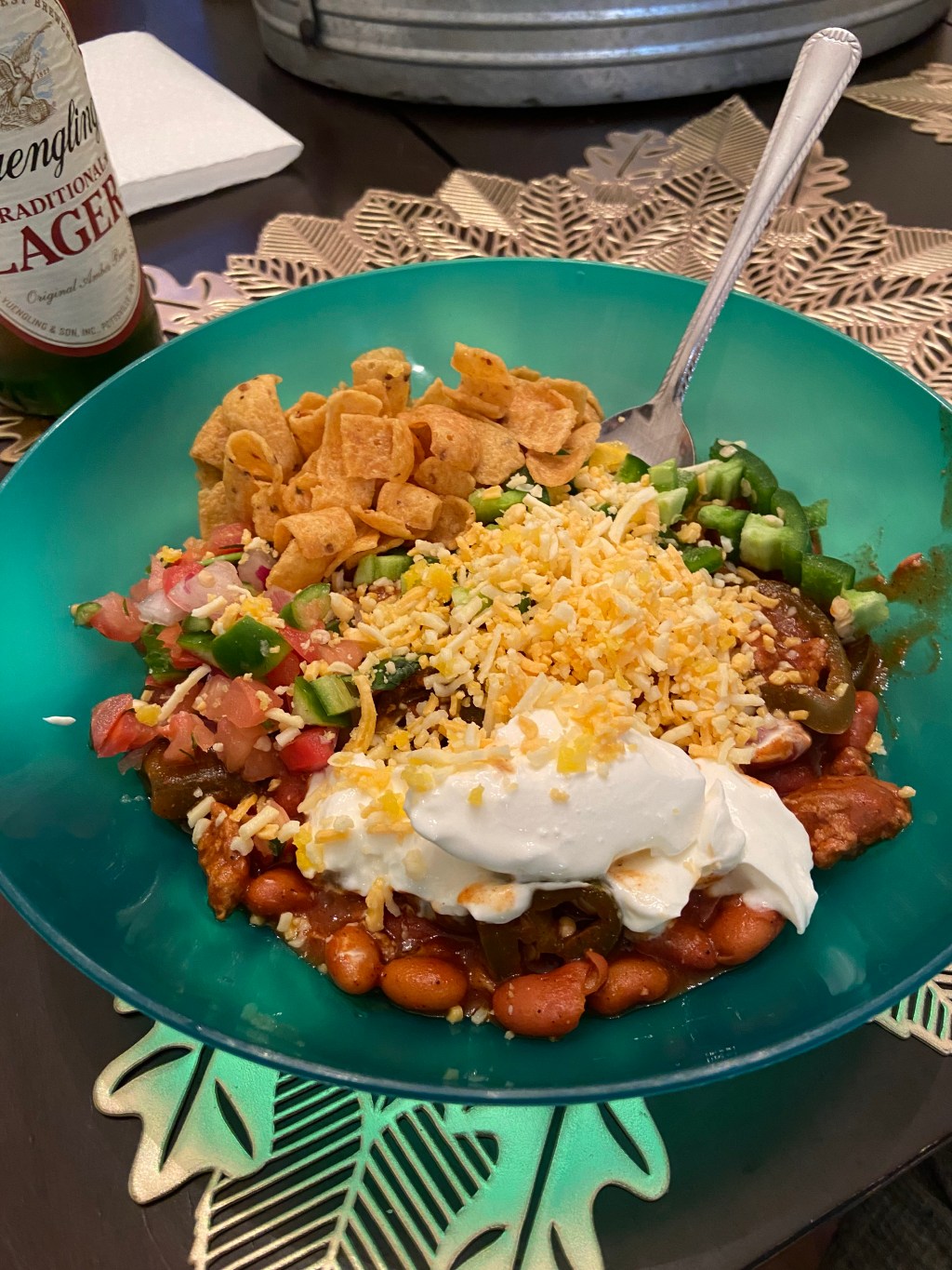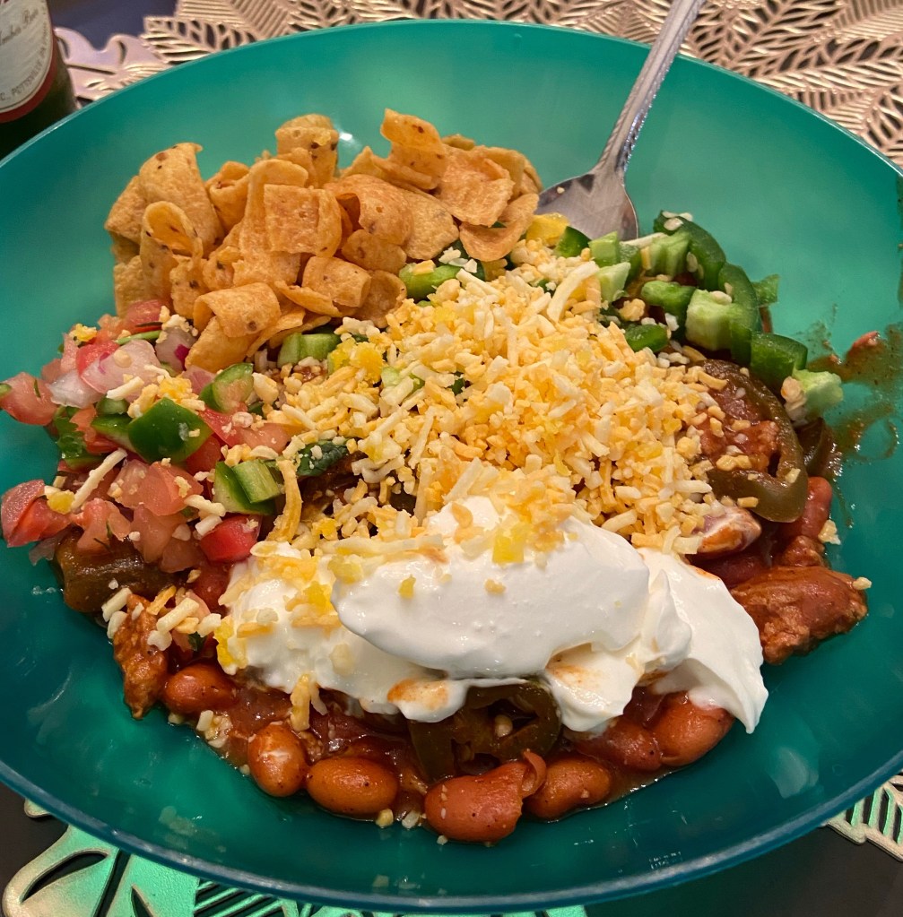 It’s that time of year when fall has settled in and the cooler weather is here to stay. That also means it’s chili season! I love this because its probably the only other time (besides grilling steaks) that my husband puts his chef hat on and makes his famous chili. Yum!