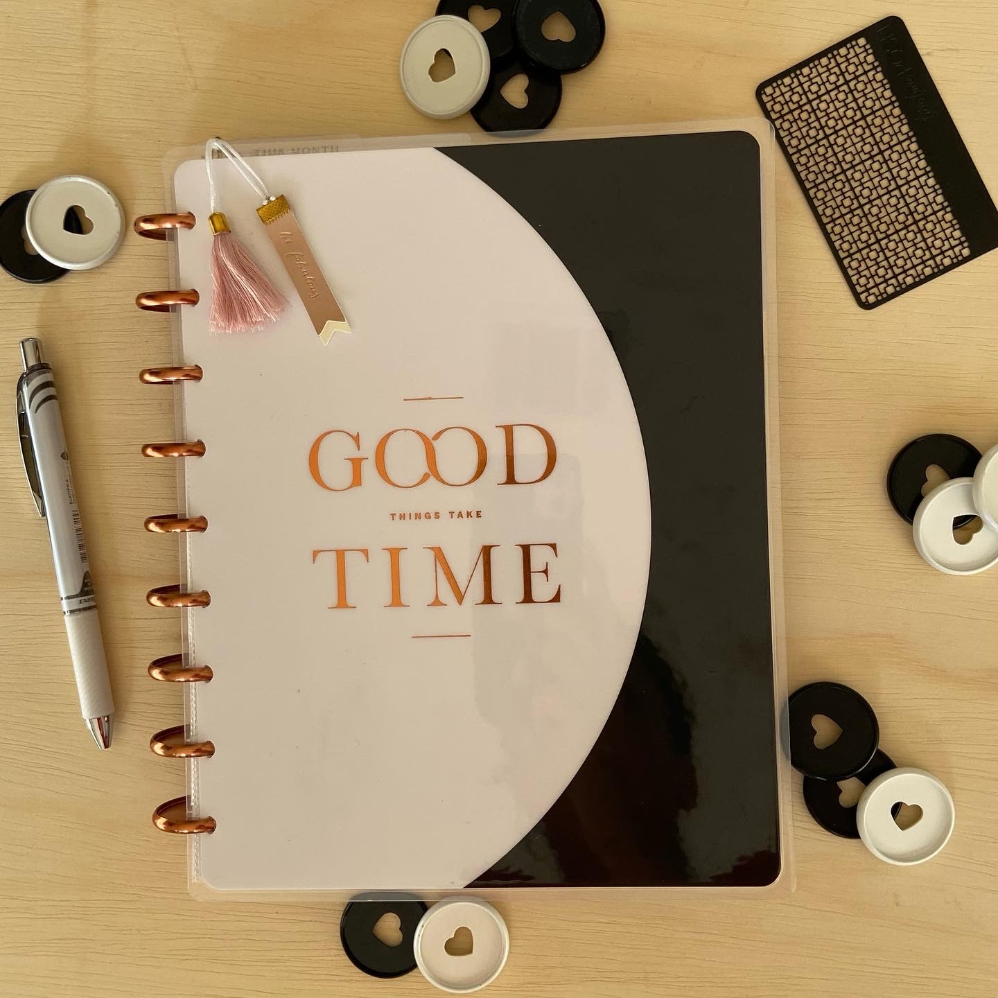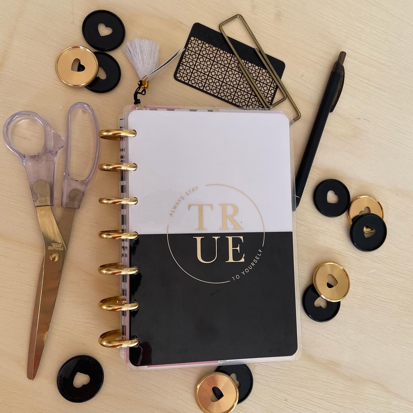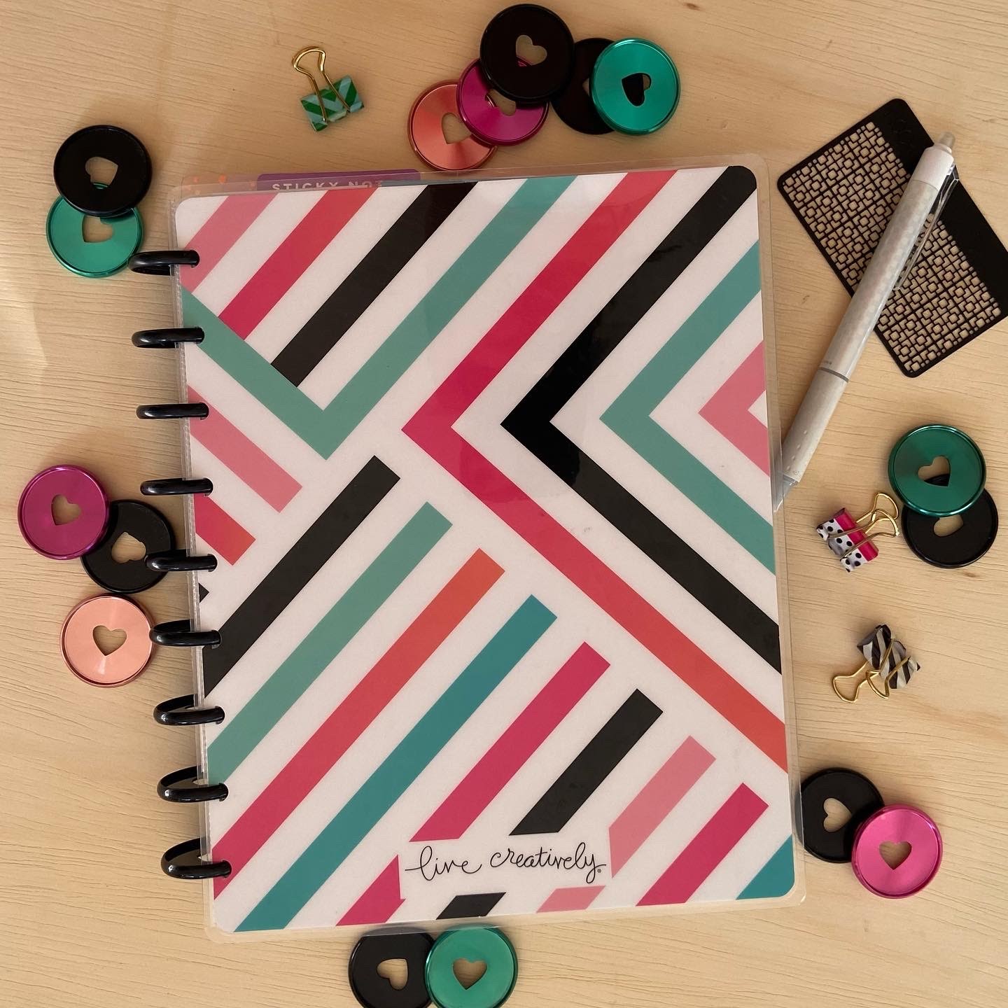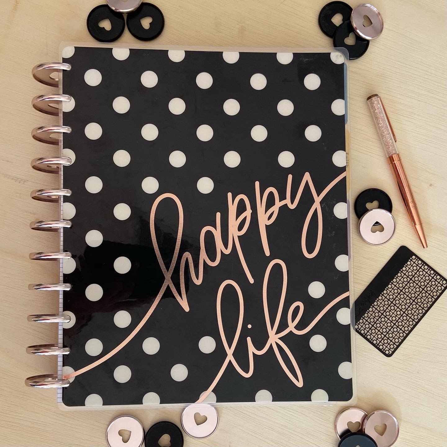 It’s the Undated Good Things Dashboard classic planner. The size is a 7×9.25 that sits on 9 discs. I am keeping with a dashboard layout and even though Happy Planner didn’t release any dated layouts for the dashboard, I am actually having some fun with truly making this years catch-all from scratch. This planner will house my daily section, budget, and house tracking.