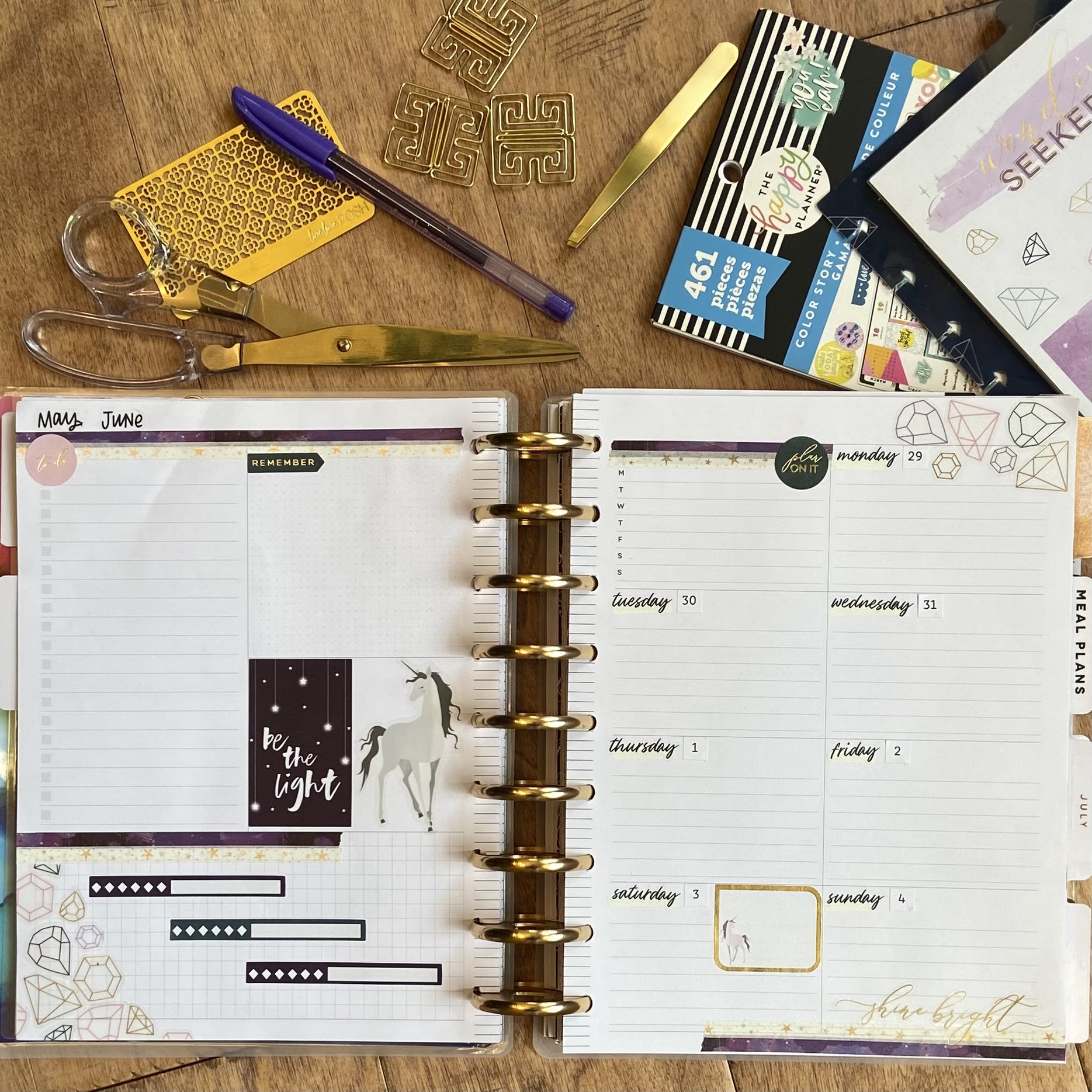 I love using a sticker book that I normally wouldn’t used. It’s great to be creative outside the box. This week’s spread came out magical and just cute.